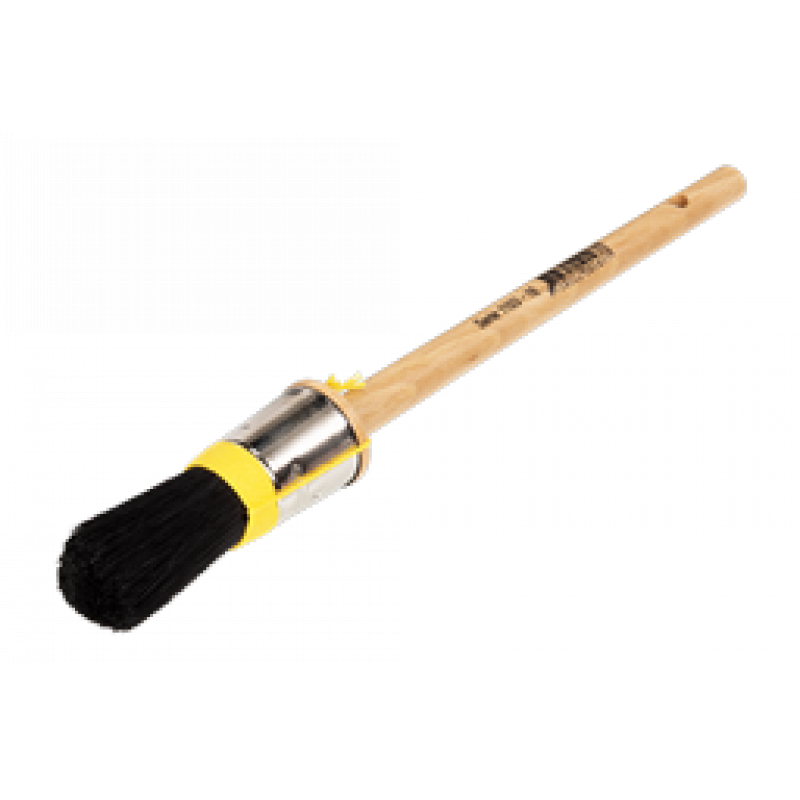 Pro-basic patentpuntkwast met gele touwwoeling. 60% tops mix haar gezet op een gelakte houten steel. Interessant voor schilder en retail.