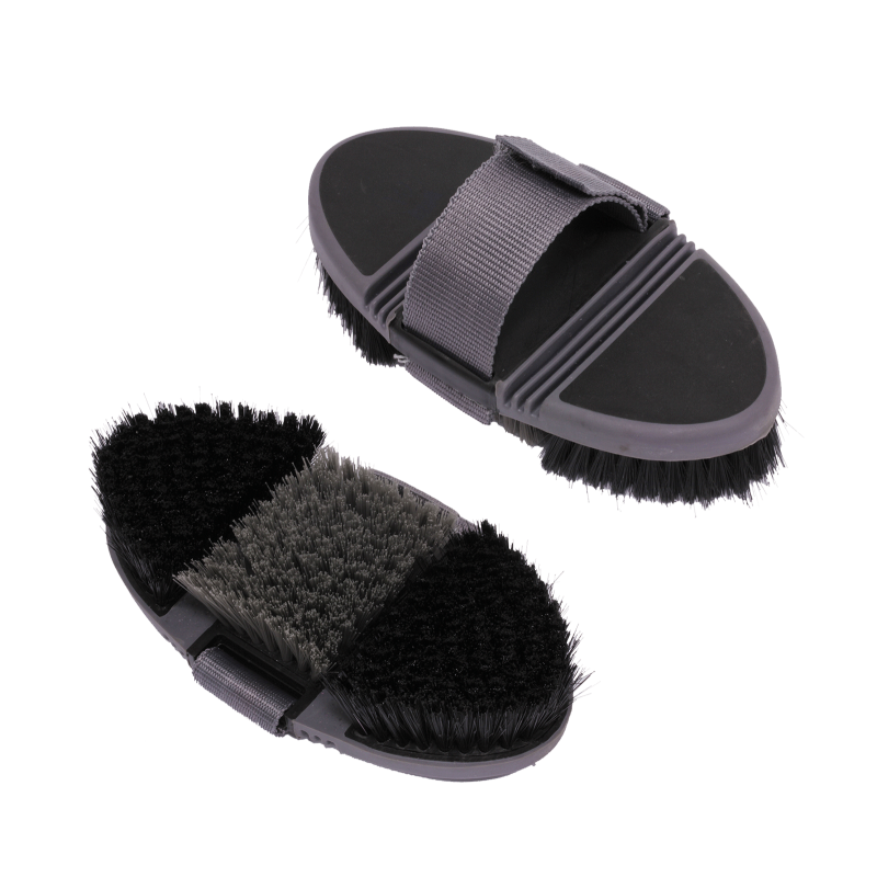 Hoogwaardige plastic met rubberen inzetstukken en synthetische borstelharen voor probleemloos verzorgen.