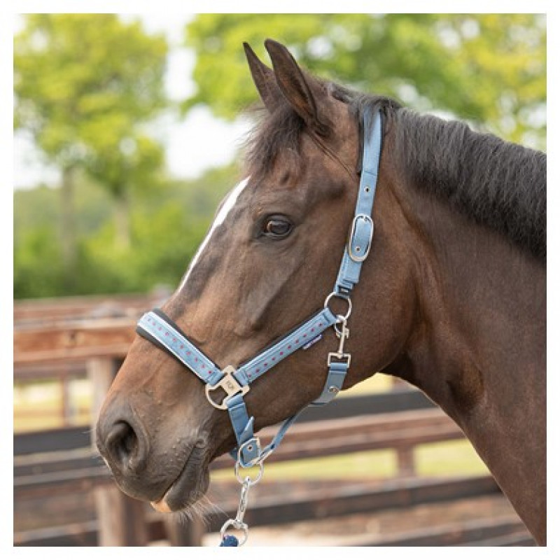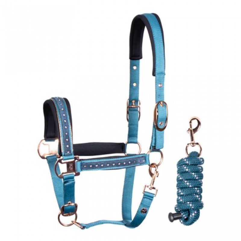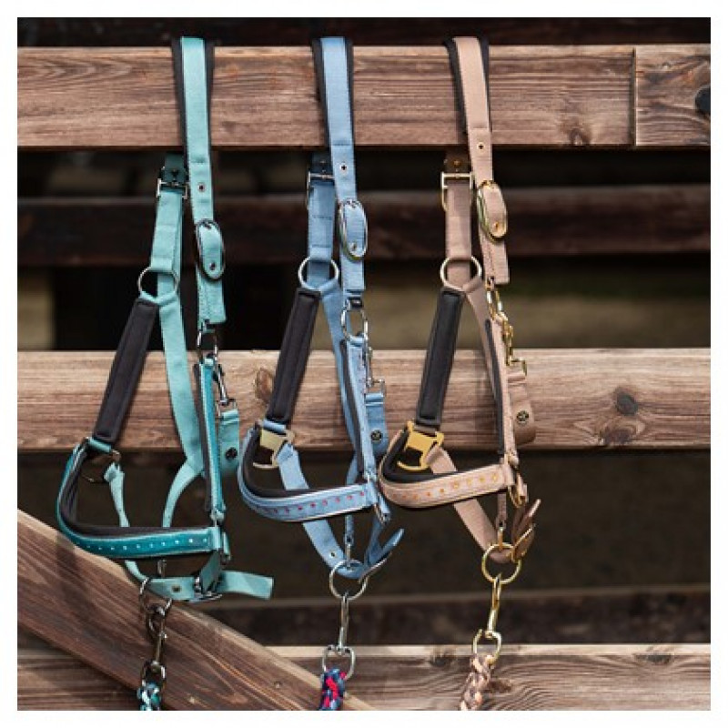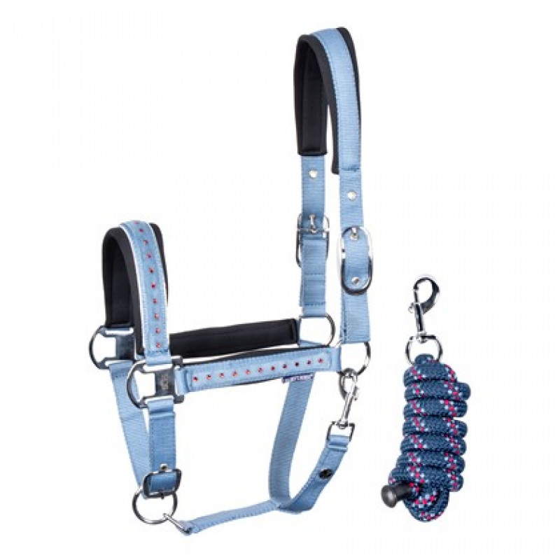 Dit luxe halster is stijlvol afgewerkt met fonkelende kristallen op de neusriem en bakstukken. Voorzien van zachte neopreen voering op alle contactpunten voor extra comfort en ter voorkoming van schuurplekken. Zowel het kopstuk (aan beide zijden) als de neusriem zijn verstelbaar voor een perfecte pasvorm. Geleverd inclusief bijpassend halstertouw van 2 meter.