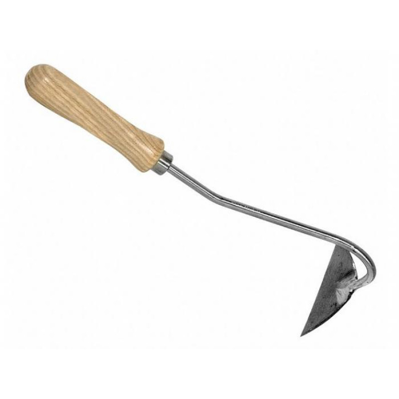 Deze halfronde bietenhak is bekend onder de tuiniers als ‘uien hak’. Klein in afmeting maar dit gereedschap kan enorm veel kracht overzetten waardoor de hak probleemloos door onkruid snijdt dat zich op of net onder de oppervlakte van dichte bloem en groente bedden bevindt. Essenhouten heft.