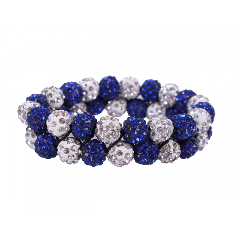 Elastische knotband met kralen geregen aan stevig elastiek. Op de kralen zijn kleine strass steentjes bevestigd voor een extra chique look.
