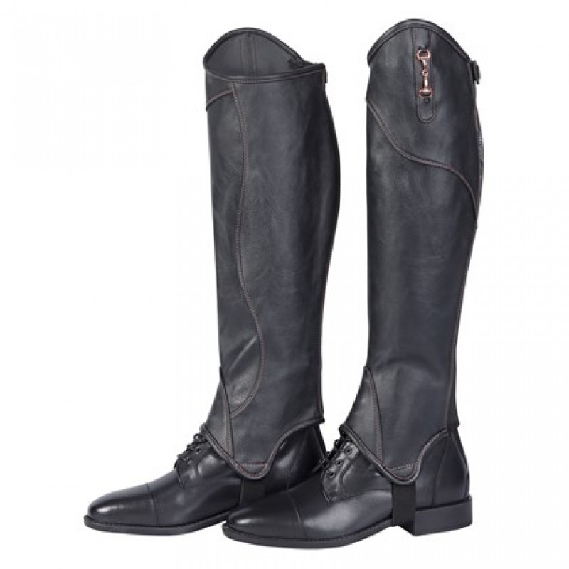 Luxe en soepele minichap met een elastisch kuitgedeelte. Uitgevoerd met een rosegold bit op de zijkant en stiksels in het rosegold. Vervaardigd uit Microtouch PU leather.