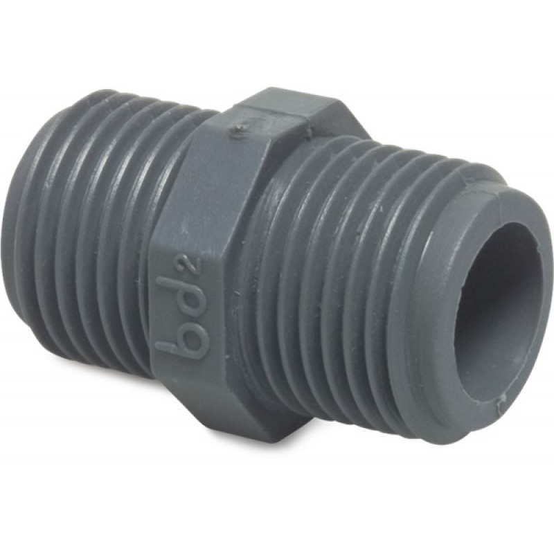NIPPEL PP 1" BUITENDRAAD 10BAR GRIJS