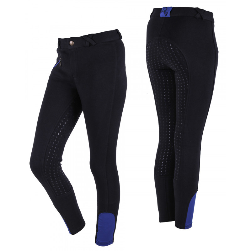 Eenvoudig uitgevoerde rijbroek met anti-slip stippen patroon voor een scherpe prijs. De rijbroek is comfortabel door de goede pasvorm, elastische stof en elastaan flexlegs. Rechts voorzien van een praktisch contrasterend ritszakje.