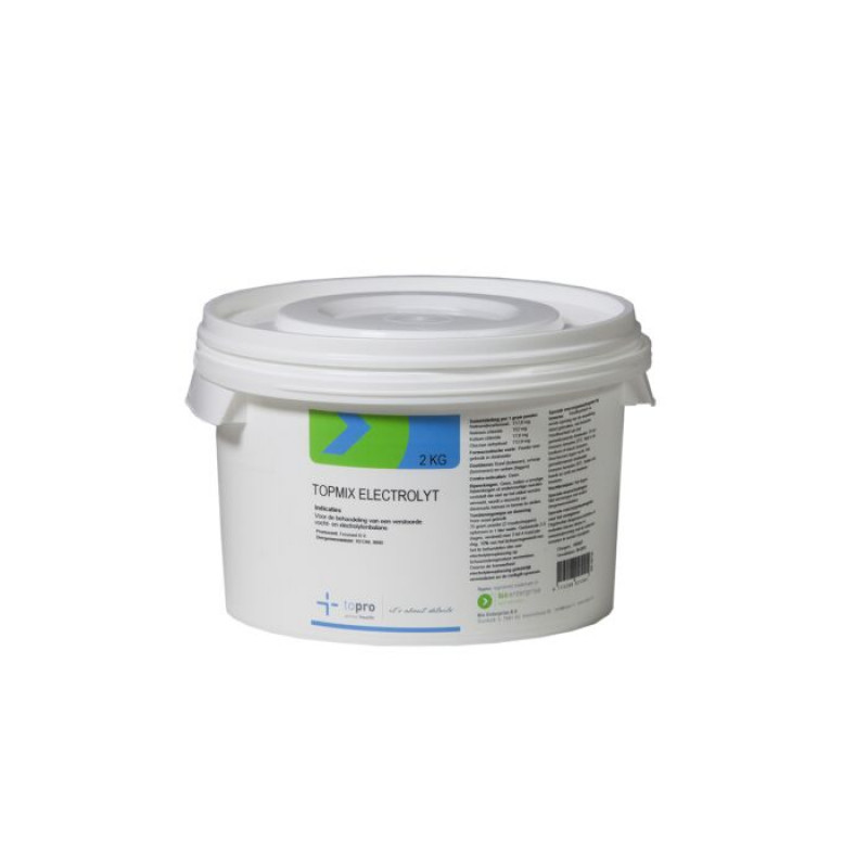 Topro Topmix electrolyt is een wateroplosbaar poeder op basis van elektrolyten en glucose. Het voorkomt en herstelt uitdroging door diarree bij kalveren, lammeren en biggen.