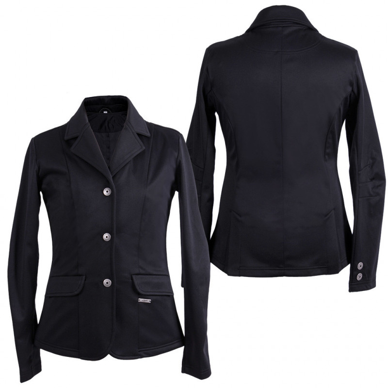 De basic wedstrijdjas Robin Junior is uitgevoerd in een licht stretchende stof. De jas is voorzien van een knoopsluiting met “Quality Horse Products” knopen. Dezelfde knopen zijn geplaatst op de mouwen. De achterkant bevat een dubbele split. Het jasje is afgewerkt met een metalen QHP badge onder de linkerzak aan de voorkant.